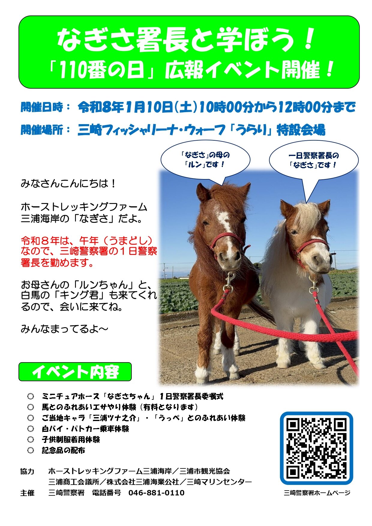 三崎警察署の「なぎさ一日署長」、うらりに来館します!